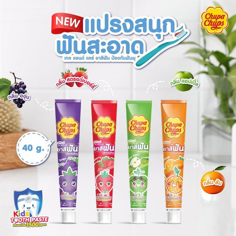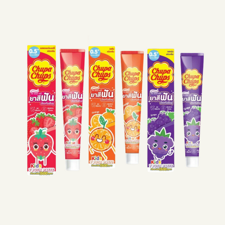 Kem đánh răng cho bé nuốt được CHUPA CHUPS Thái Lan 40g có 3 mùi: Dâu, Cam, Nho